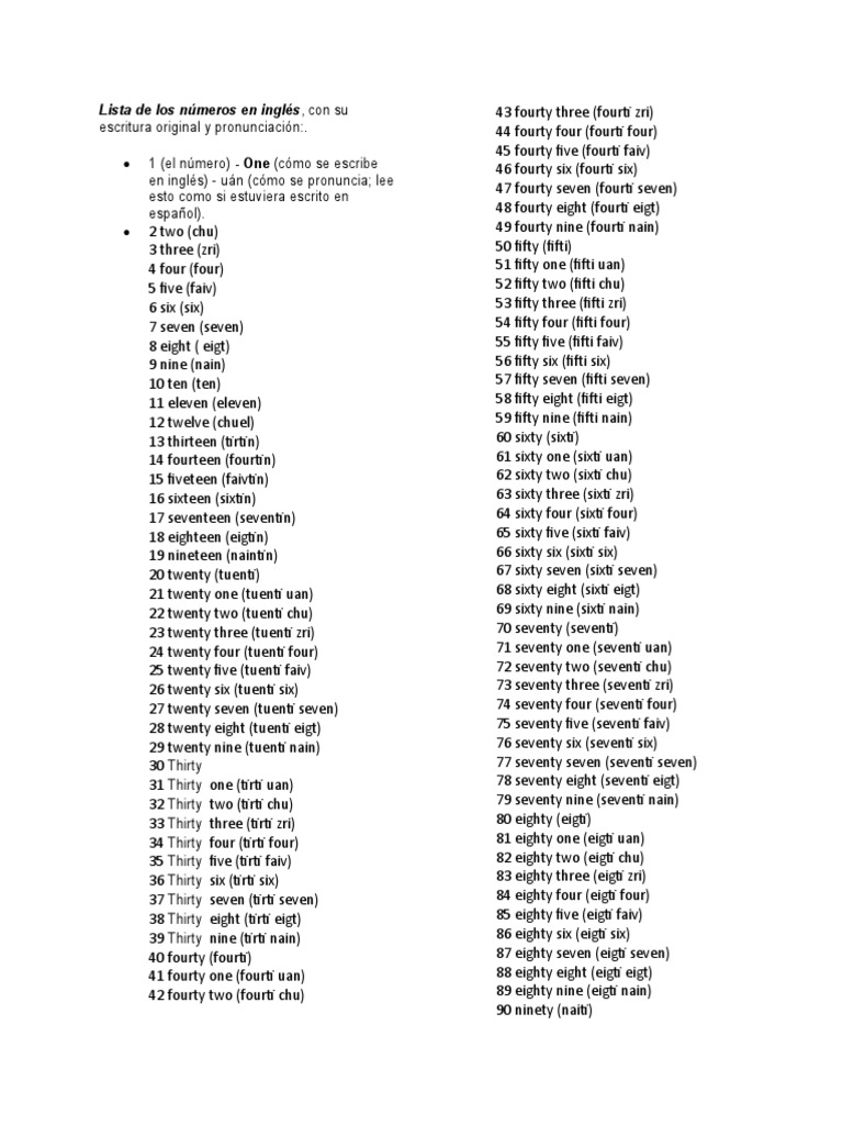 Como se escribe ochenta en ingles - IAMMRFOSTER.COM from iammrfoster.com No obstante, en el uso común, fuera de textos técnicos, estos dos ceros pueden omitirse si tras la indicación de la hora se escribe el símbolo h: Como se ve en el último ejemplo, las horas en punto incluyen dos ceros en la posición correspondiente a los minutos. Tal vez usted nos encontró buscando respuesta a esta pregunta: Si no existe la necesidad de usarlo más grande, lo mejor es algo menor o igual a 220px. En esta página te enseñamos como se escriben los números en inglés completos del 1 al 10, del 1 al 20, del 1 al 100 e incluso del 1 al 1000. En qué comunidades hay y cómo se pueden solicitar más de la mitad de las regiones tienen descuentos o bonificaciones algunas van dirigidas solo a los. Aunque sepas cómo se pronuncia cada palabra en inglés, esto no significa que las digas correctamente al tener una conversación real en inglés. We would like to show you a description here but the site won't allow us.